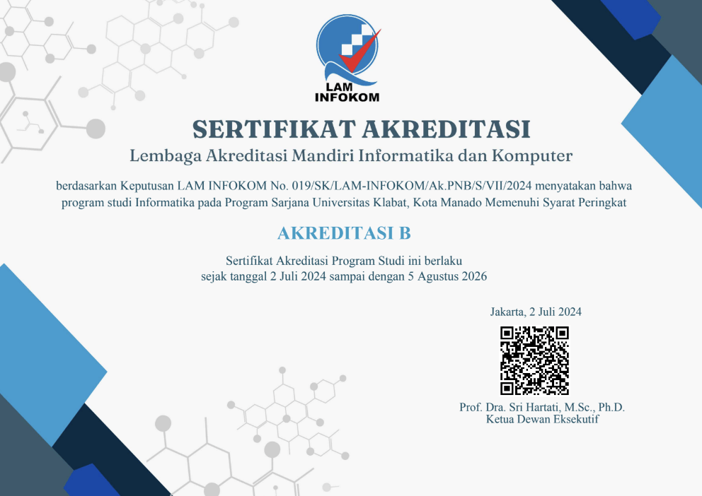 Program Studi Informatika berhasil mendapatkan akreditasi B pada tahun 2016, dan sampai saat ini melalui Surat Keputusan BAN-PT Nomor 10993/SK/BAN-PT/Ak.PPJ/S/IX/2021 & Surat Keputusan LAM-INFOKOM Nomor 019/SK/LAM-INFOKOM/Ak.PNB/S/VII/2024. Peningkatan akreditasi ini menunjukkan komitmen FILKOM dalam memberikan pendidikan berkualitas yang sesuai dengan standar nasional.